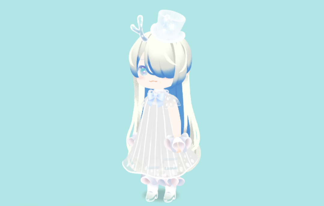 白い髪に青いメッシュが特徴的なコーデ。