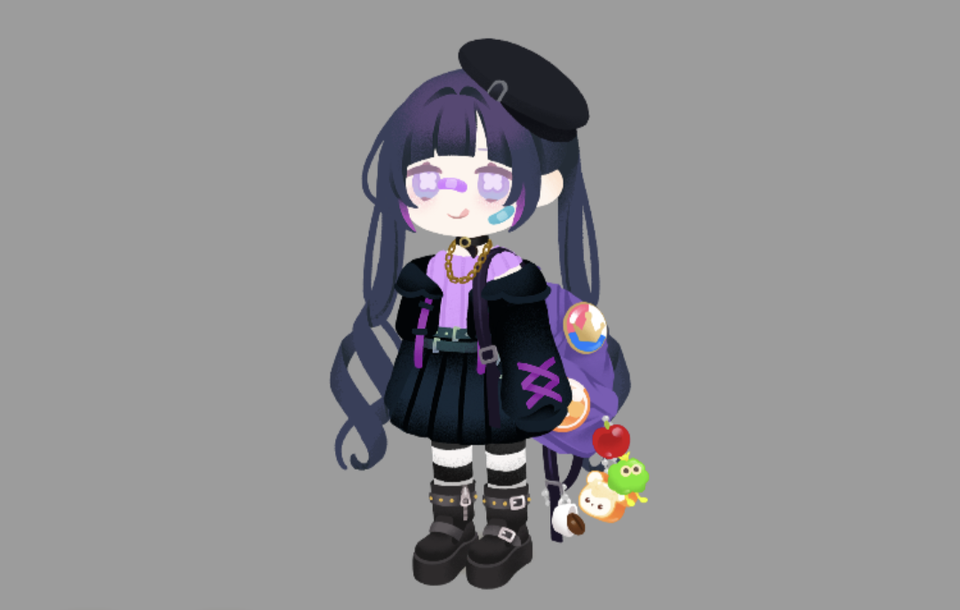 黒に紫、そしてじゃらじゃらのぬい達。